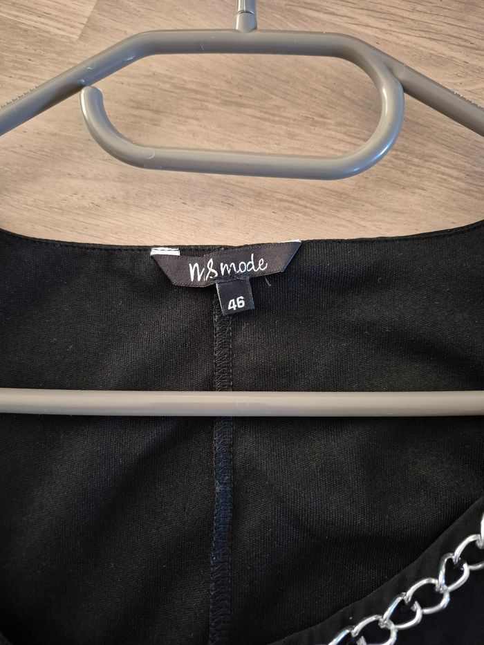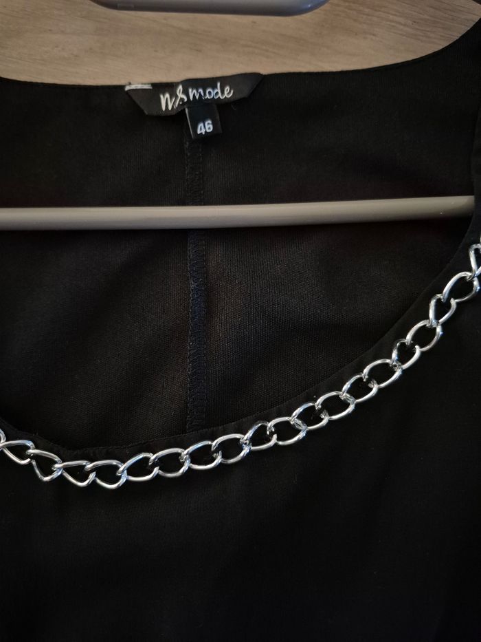 Robe manches courtes Marque : MSmode Couleur : noir Taille : 46 Très peu portée Avec 'collier' argenté au cou