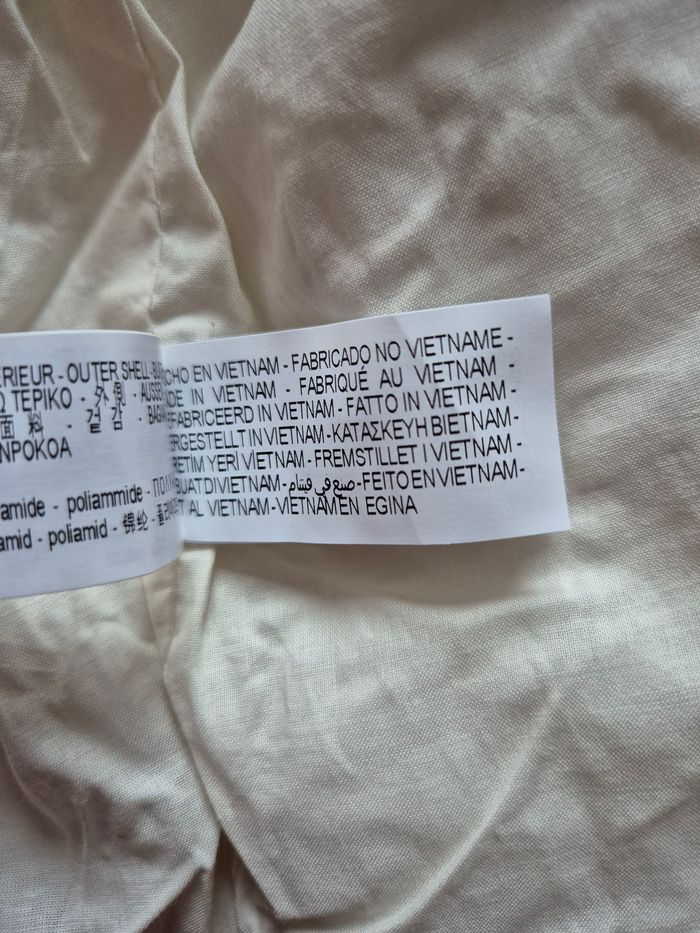 Doudoune courte de la marque Zara. Neuve, encore avec son étiquette. Coloris = blanc cassé. Indiquée en taille XS mais taille très grand. Peut convenir jusqu'au petit 40. Grand col. Fermeture par 4 boutons pression. 2 poches latérales. Composition = 100% polyamide, remourrage 100% polyester. Fabriqué au Vietnam. Mesures à plat = Largeur aux épaules = 58cm environ. Largeur aux aisselles = 58cm environ. Longueur = 58cm environ. N'hésitez pas à me contacter si vous avez des questions. Je vous répondrai dès que possible.