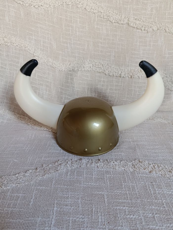 Casque de viking avec cornes, idéal pour un déguisement, une fête costumée ou comme accessoire de jeu. 📌 Modèle : casque viking 📌 Couleur : doré avec cornes blanches 📌 État : Très bon état ➡️ Léger et confortable ➡️ Taille unique ➡️ Parfait pour carnaval, anniversaire ou jeu d’imagination Accessoire fun et original ⚔️🪓 👉 Envoi rapide 📦 👉 Dressing moderne & à petit prix ✨ 👉 Découvre aussi mes autres articles dans mon dressing