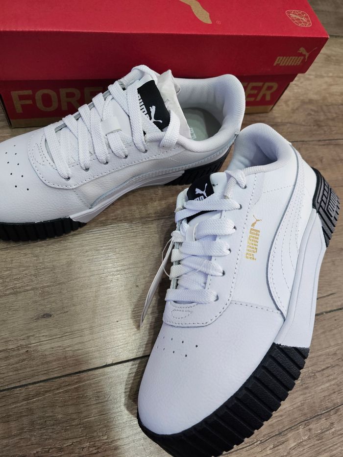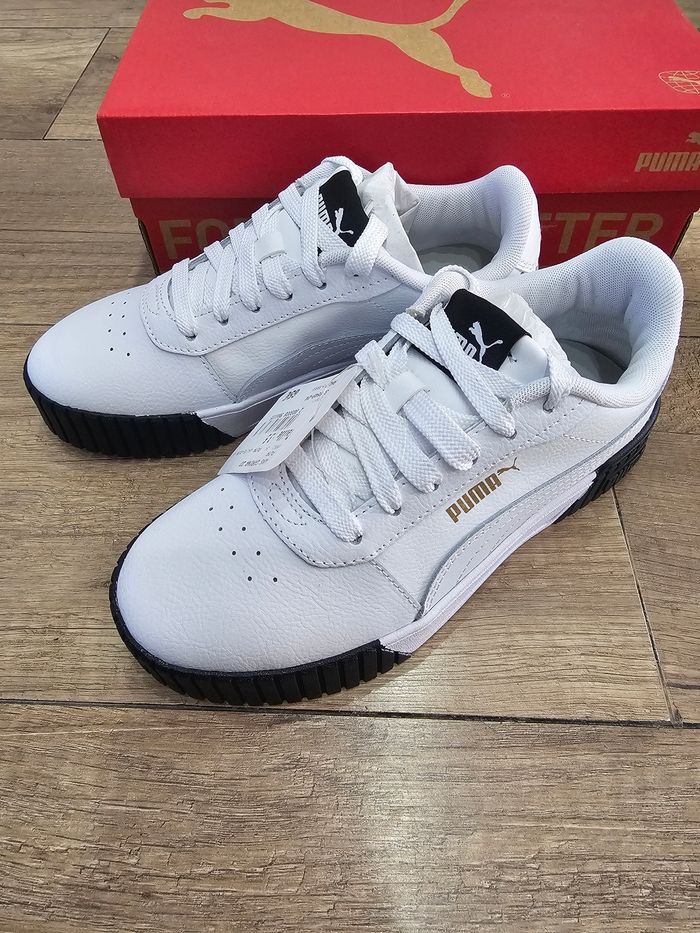 Magnifiques baskets fille, en cuir,Puma Carina 2.0, blanc et noir, pointure 36 - photo numéro 1