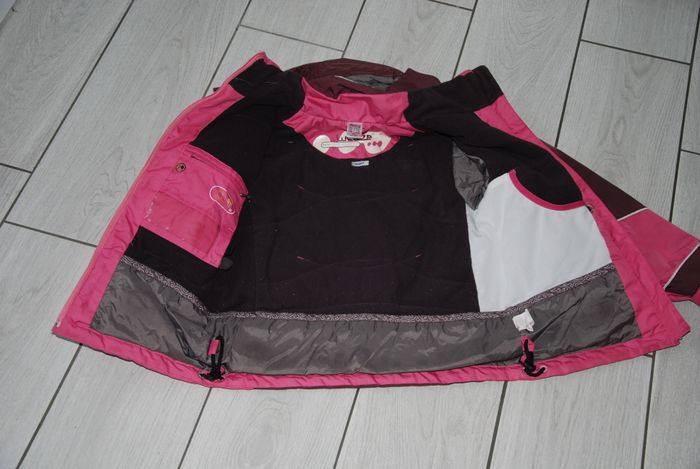 Veste blouson de ski fille quechua 10 ans en très bon état servi deux fois 1 semaine au ski ,elastique par-neige en bas de la veste, bande velcro de resserrage capuche escamotable velcro aux poignets