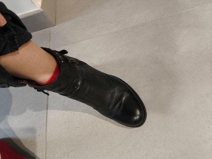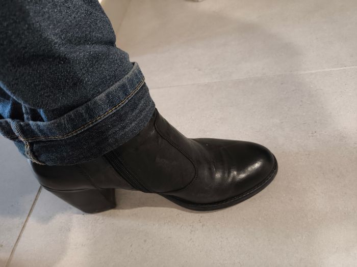 Bottine fabrication italienne. Très bon état général. Taille 38 Talon un peu usé et décoloré par le temps voir photo si besoin.