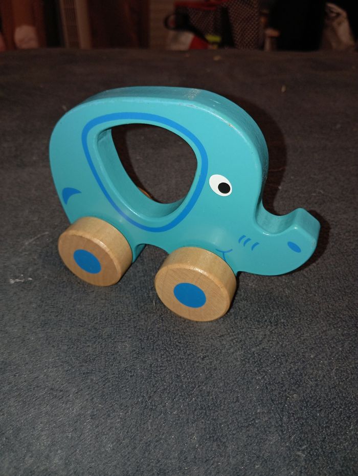 Voiture en bois pour bébé, éléphant bleu Très bon état, maison non fumeur