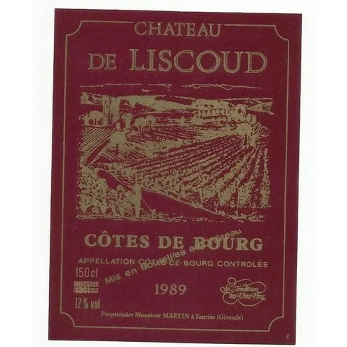 etiquette de vin chateau liscoud cote de bourg 1989 -
