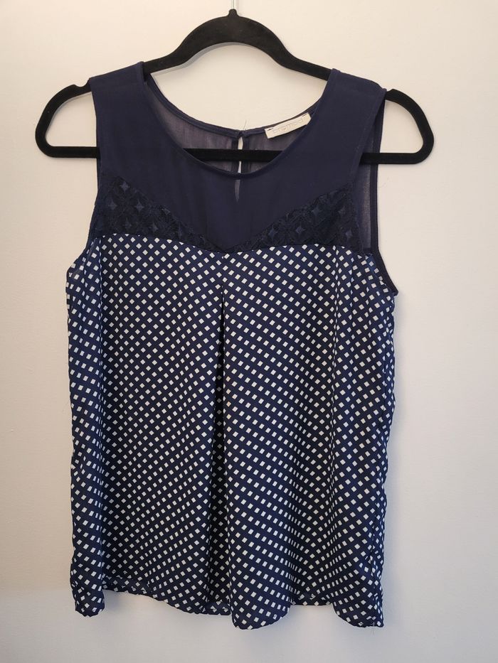 Je vends ce joli haut Promod en bleu marine et blanc. - Type de produit : Haut - Marque : Promod - Taille : 36 - S - Couleur : Marine / Blanc - Mesure : Environ 40 cm aisselle à aisselle et environ 60 cm de longueur - Caractéristiques : Empiècement en dentelle N'hésitez pas à me contacter pour plus d'informations ou de photos. #mlledu10tailleS