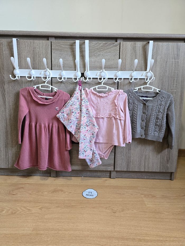 Lien direct vers les tailles équivalentes dans mon dressing : #fdhsarah24mois #fdhsarahSGMJ Photos détaillées dans des annonces individuelles dans mon dressing. 📜 Lot comprenant 4 articles : - Robe tricot fantaisie, Finition coquille sur col et broderies fleurs roses sur buste. Ref : LANOLWEN - Blouse body manches longues rose. Buste brodé avec volants. Ref : LANICOLE - Legging imprimé fleuri rose, prune, vert anis sur fond écru. Ref : LANINON - Gilet/Cardigan tressé fantaisie avec des fils métallisés. Ref : LANADIA Collection : Meringue a Vienne Taille 📏 : 24 mois 86 cm État 🔍 : Très bon état Marque 🏷️ : Sergent Major Je suis disponible pour toutes questions ou photos supplémentaires. 📦 L’envoi se fait le plus rapidement possible Bon Shopping #fdhxxx24xxx