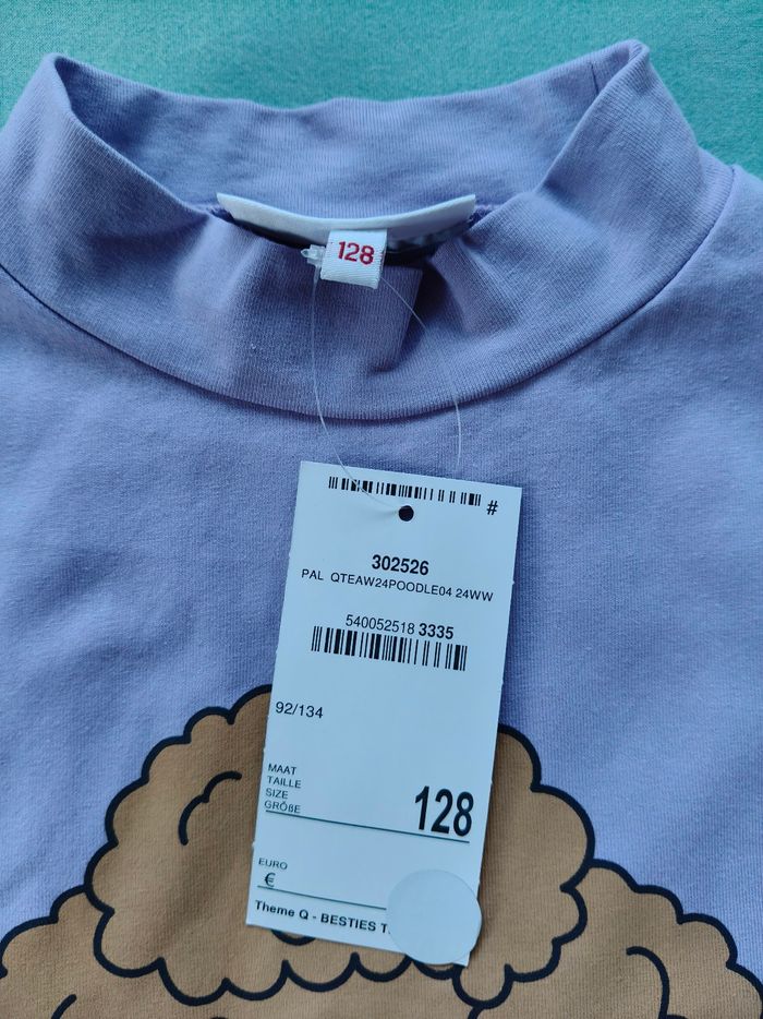 Tee-shirt manches longues fille JBC lilas chien 128 cm neuf - photo numéro 1