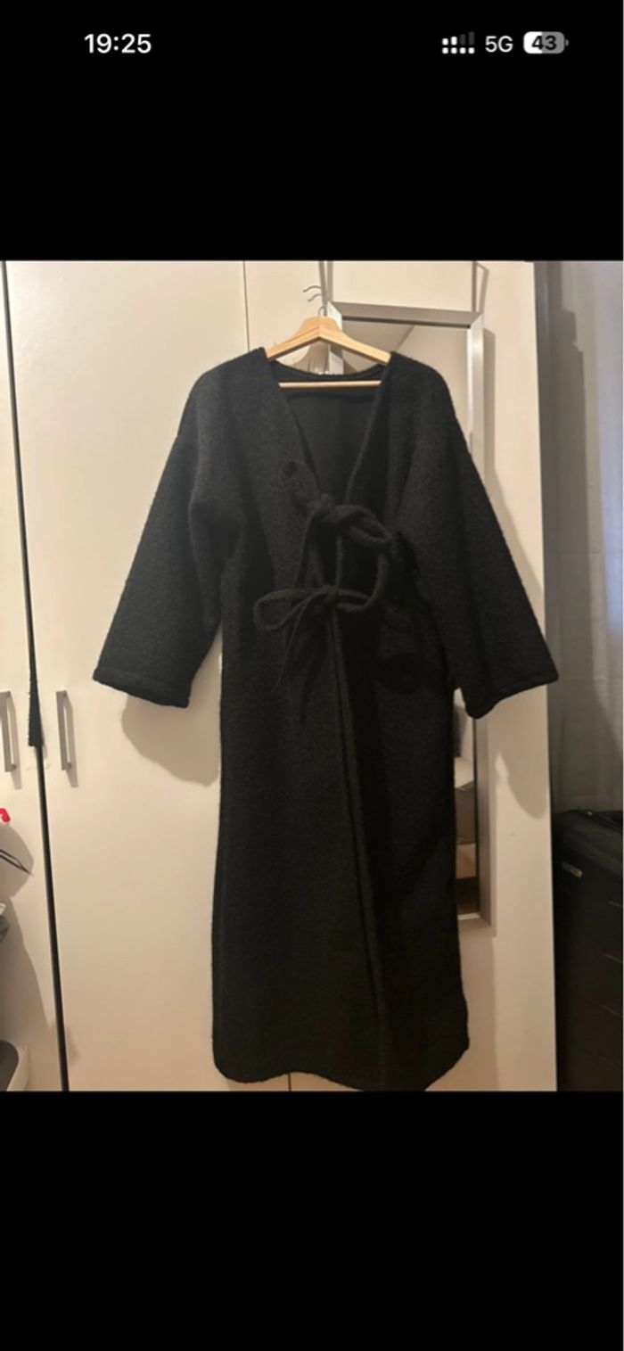 long manteau noir avec nœuds, neuf jamais porté. boutique indépendante. conviens d’un 34 à un 42.