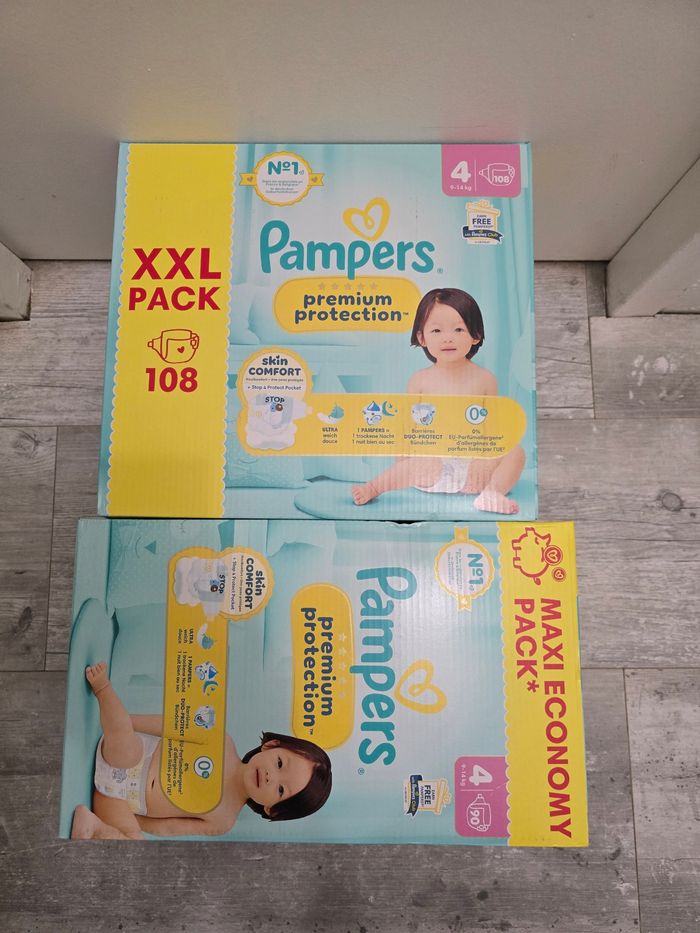 Vendu🍼 Pampers Premium Protection T4 Lot mixte 1 × 108 couches + 1 × 90 couches (9–14 kg)