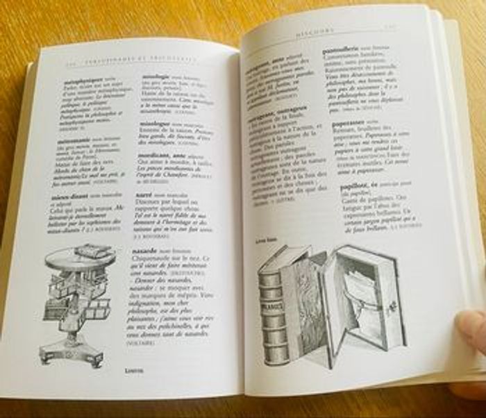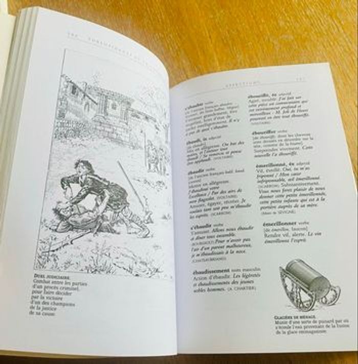 Turlupinades et tricoteries Dictionnaire des mots obsolètes Larousse 267 pages Collection : Le Souffle des mots Désamour, s'aheurter, musiquer, désheurter, sade (sans majuscule !) tous ces mots ont disparu de l'usage. Les auteurs vous proposent de redécouvrir ce riche lexique d'antan pour le plaisir de badauder, bibeloter, musarder. ° Un livre d'auteurs amoureux de la langue : la sélection des mots est celle de «ceux qui aiment et se délectent». C'est la «charge affective et sensuelle» des mots d'autrefois qui a guidé le choix des auteurs. ° Une exploration des trésors de la langue : les auteurs sont allés à la recherche des mots rares dans les dictionnaires anciens comme le Littré et le Nouveau Larousse illustré (publié de 1897 à 1904). ° Suivant le principe selon lequel «la langue est un théâtre dont les mots sont les acteurs», l'ouvrage est organisé autour de 6 thèmes : décors, acteurs, affections, manières, discours et coulisses. ° Pour chaque mot, on trouvera : - une courte définition et le cas échéant un recours à l'étymologie. - des citations (Rabelais, Voltaire, Baudelaire...) qui resituent les mots dans leur contexte. ° Un ouvrage richement illustré de gravures mettant en scène des objets ou des réalités disparues, comme la bigotelle qui permettait de tenir les moustaches relevées pendant la nuit. ° Un riche index permet de circuler très facilement dans l'ensemble de l'ouvrage, de «abalourdir» à «zoïle» en passant par «féminie».