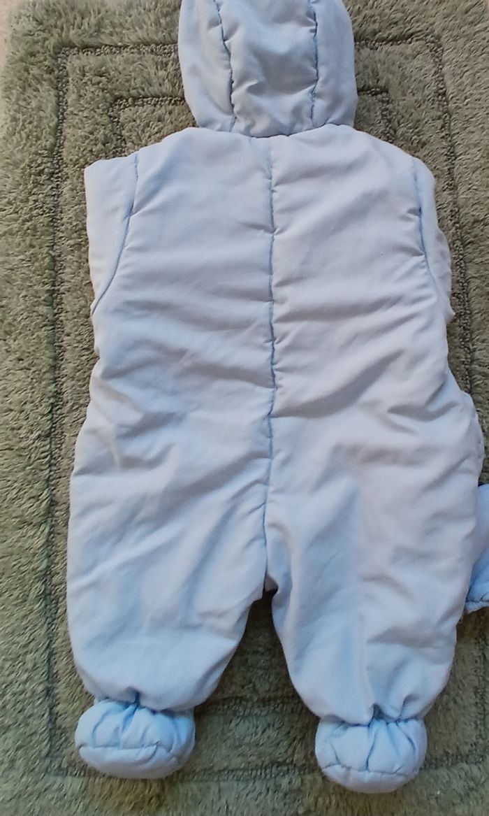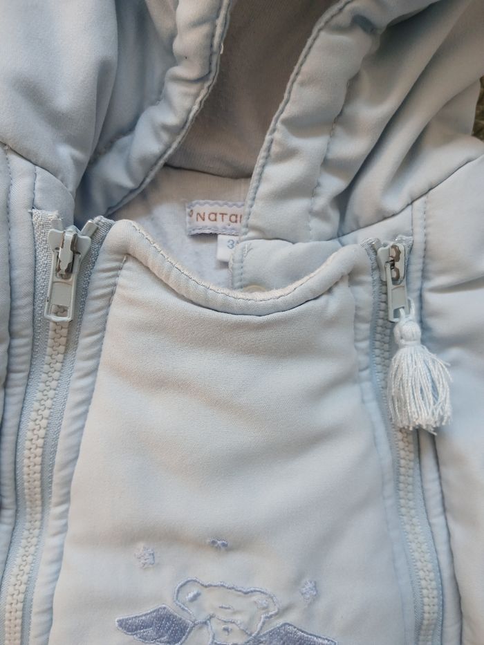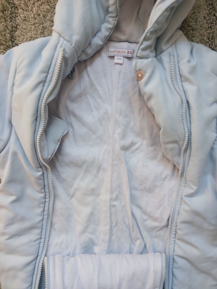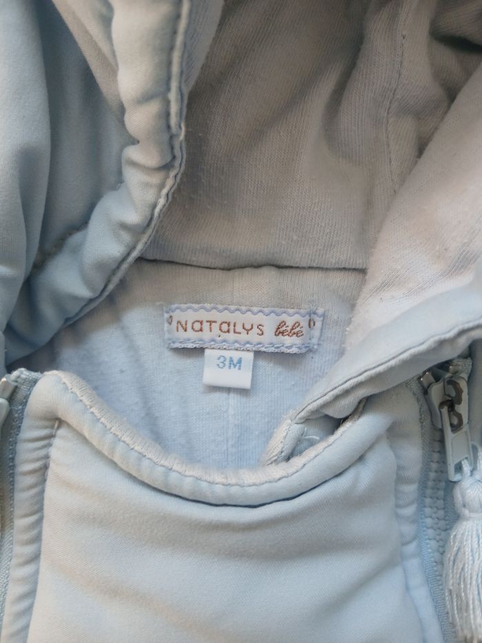 combinaison pilote bien chaude et confortable, idéale pour l’hiver. Taille : 3 mois Marque : Nathalys Couleur : bleu très clair État : très bon état général À noter : une toute petite tâche à l’avant et une petite imperfection à l’arrière (voir photos), mais cela n’affecte en rien son utilisation ni son confort