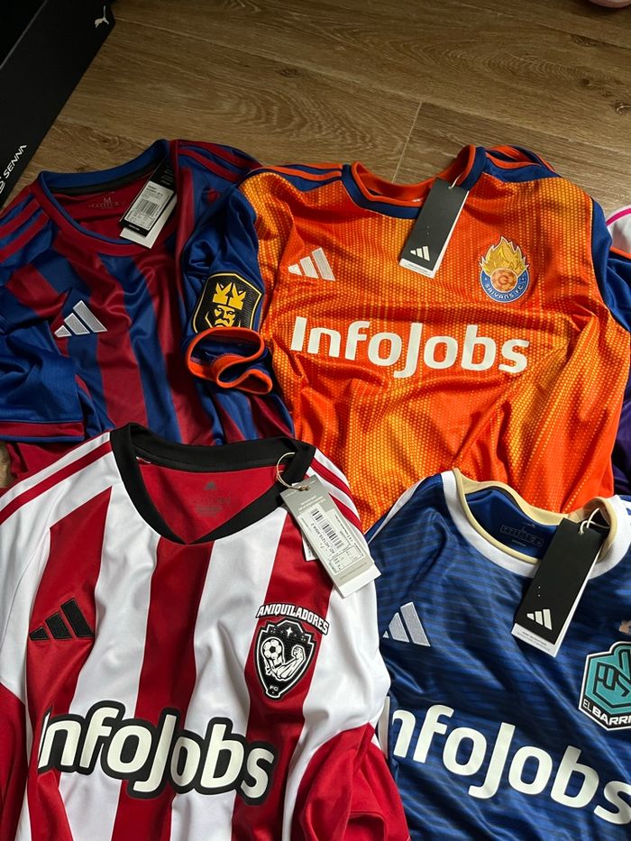 Lot de 9 maillot de foot Adidas neuf avec étiquette. Authentique avec la plupart des maillots en L et ensuite M et XL. Prix par maillot en magasin 69.99€. Envoi rapide