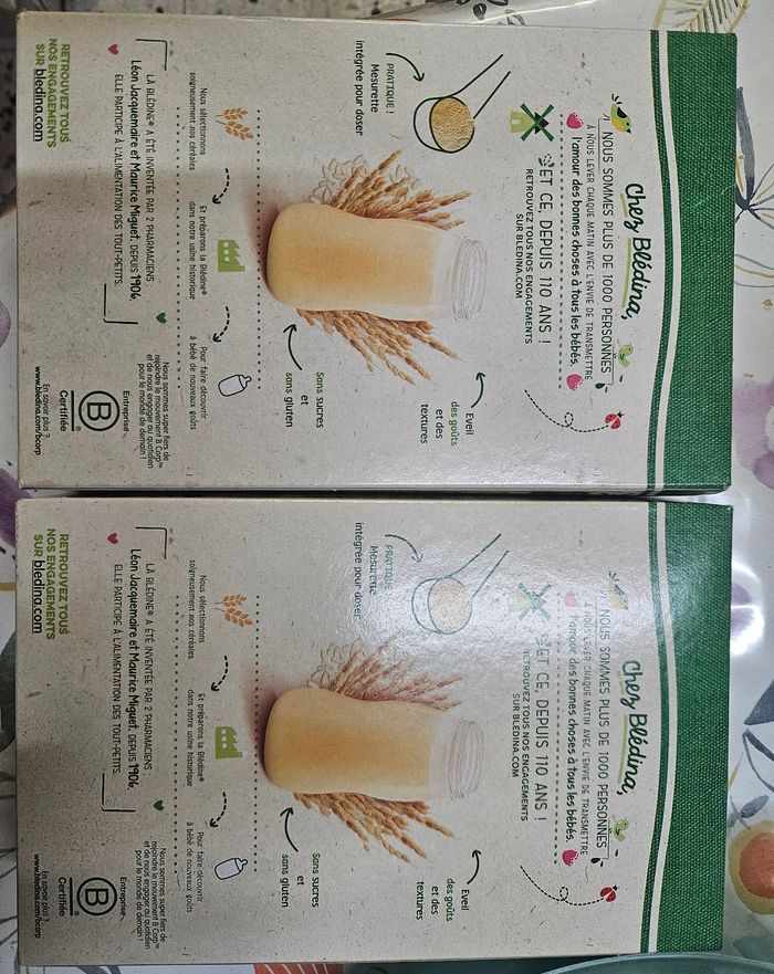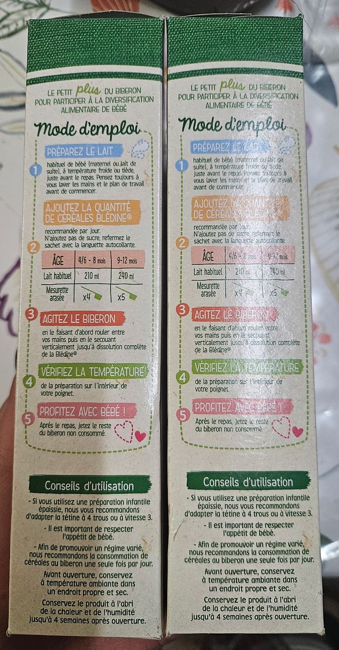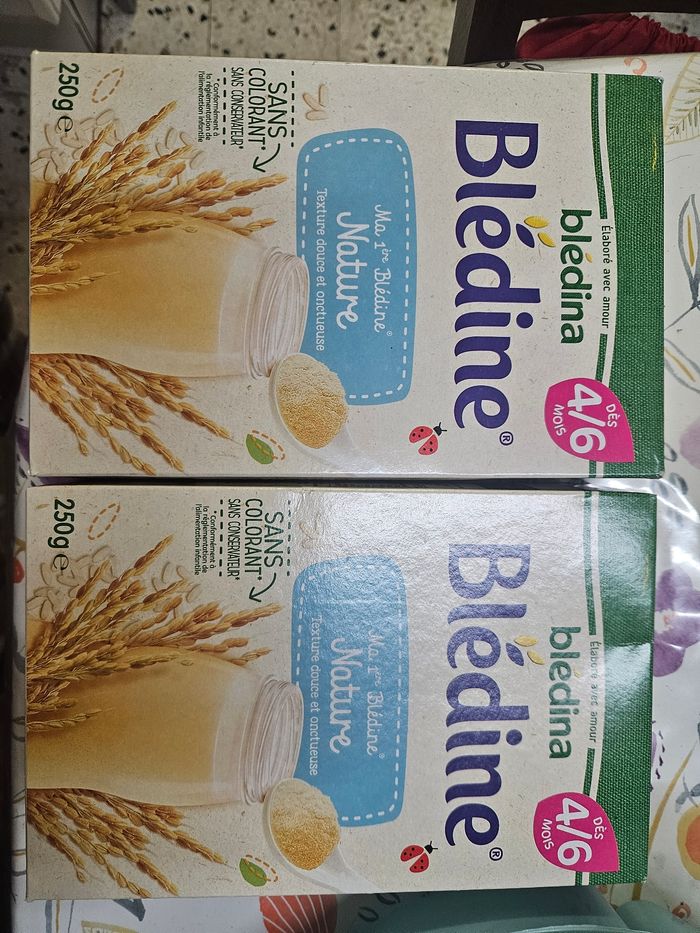 Blédine Ma 1er Blédine Nature dés 4/6 mois. Un des deux cartons est ouvert mais le sachet n'est pas ouvert. Acheté sur le site blédina a 6€ l'unité.