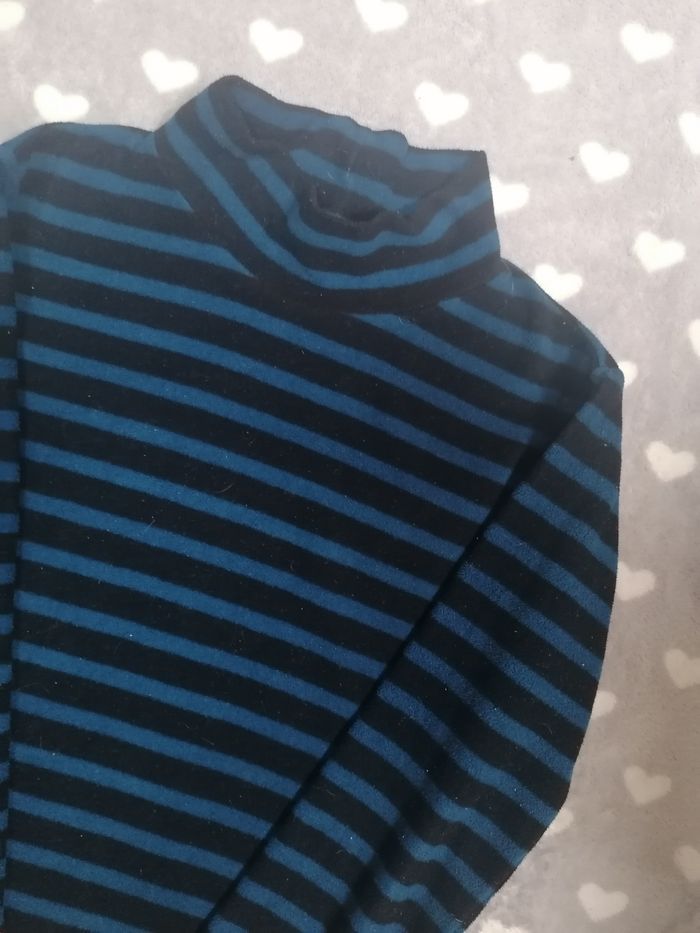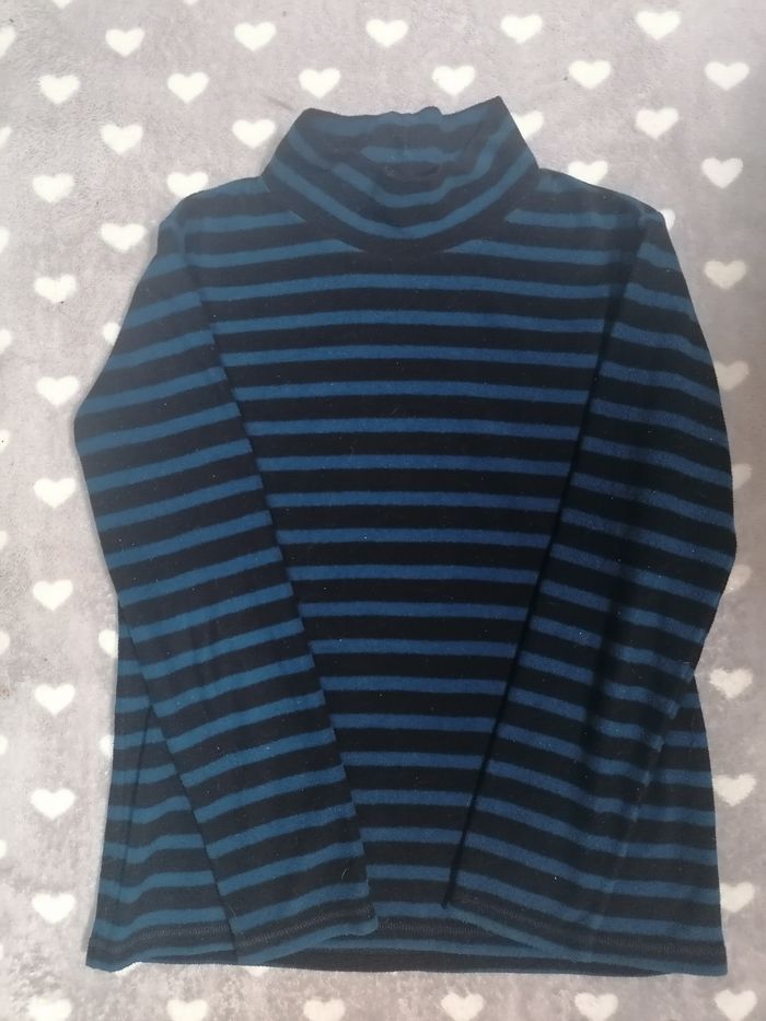 Sous-pull ❄️ col montant manches longues garçon 11 ans Bleu et marine à rayures, super doux et chaud. 100% polaire fine. Bien porté, en bon état général. Étiquette 11 ans, mon fils le portait encore lorsqu'il mettait du 12 ans. Près de corps. Sous-pull idéal pour jouer dehors quand il ne fait pas très chaud !!! Gorge protégée anti coup de froid ! Super avec plusieurs articles de mon dressing ! Faites un lot, 10% de remise dès 5 articles achetés !! 💙💛🧡