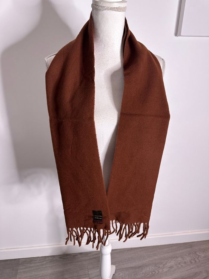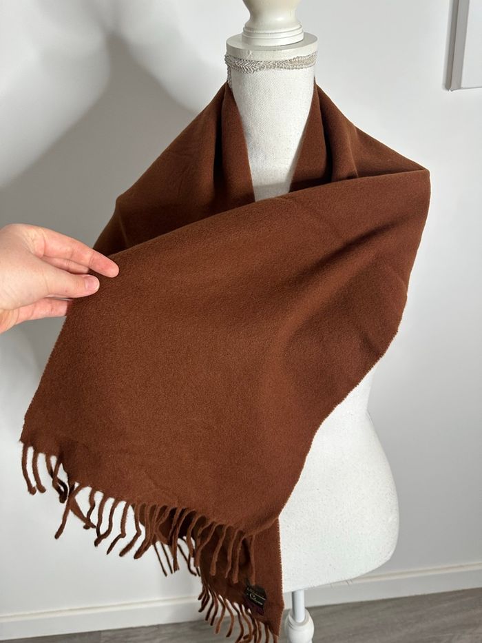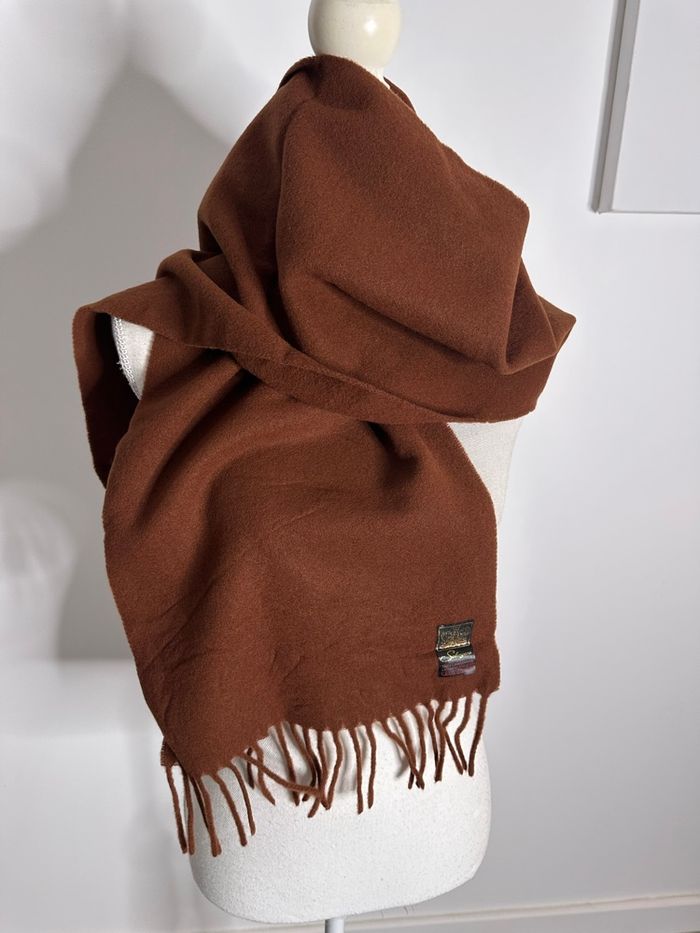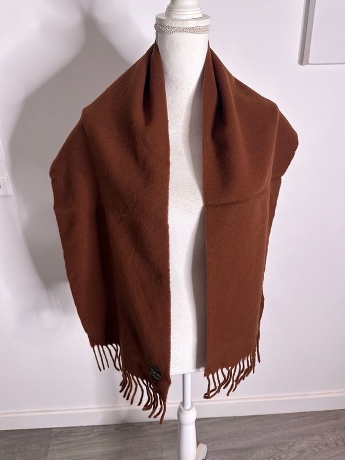 Écharpe châle - Excellent état - Marron - Avec franges - 100% laine d’agneau - Vintage, années 80’ - Ultra douce et chaude - Marque Salangane Dimensions: - 30cm de large - 150cm de long sans les franges - 8cm de franges de chaque côté