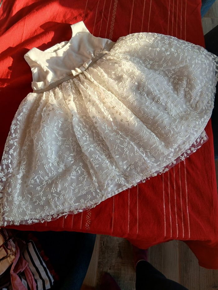 Cette robe à était porté que 3 fois lors de cérémonie. En bonne état De couleur crème avec de la dentelle. 23mois taille 86cm