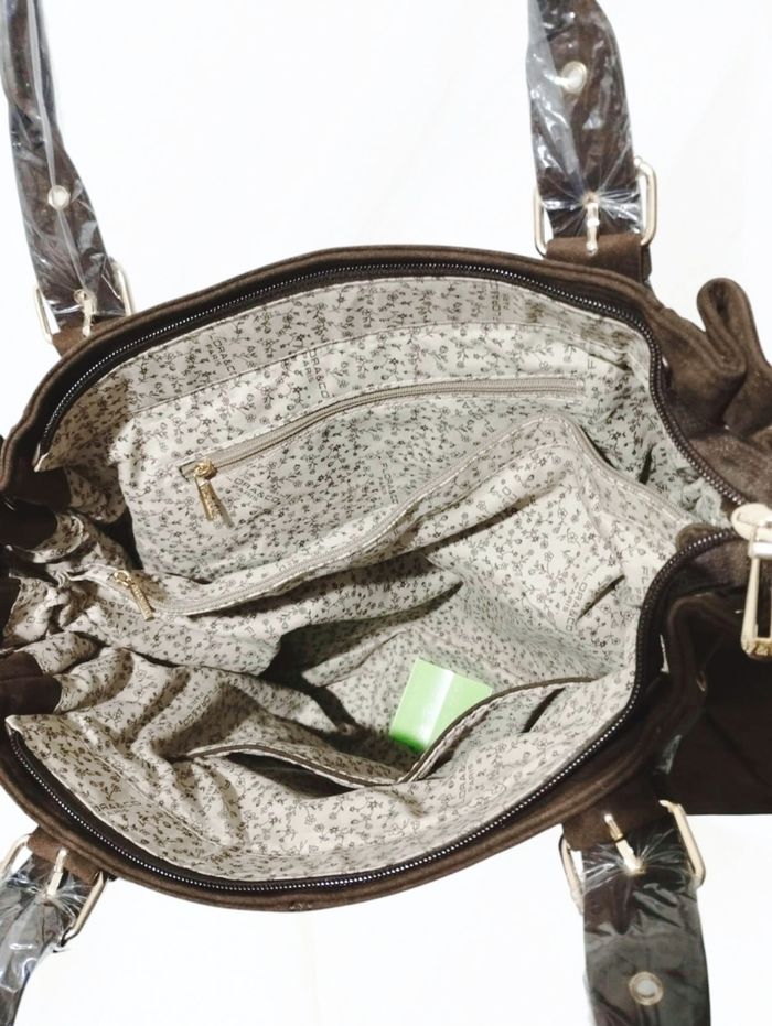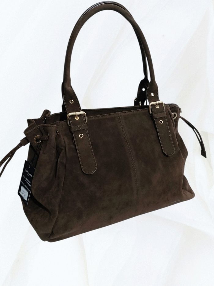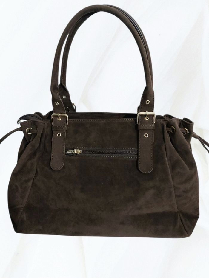 💌 Articles d'origine uniquement 💌 EXPÉDITION rapide 💌 Emballage neuf et soigné CARACTÉRISTIQUES : Grand sac suédine qui n'a rien à envier aux plus grandes marques, il est l'accessoire parfait pour compléter avec style et raffinement vos tenues préférées. Très fonctionnel, il offre une grande capacité de rangement qui en fait un allié idéal pour de nombreuses occasions : cours (classeurs A4 ou 32/25 cm, Pc, tablette ...), travail, shopping, voyage .... ⚜️ État : neuf avec étiquette ⚜️ Matière : 80% polyester et 20% synthétique ⚜️ Modèle : large ⚜️ Couleur : chocolat 🍫 ⚜️ Parties métalliques : dorées ⚜️ Détails : lacets ajustant la longueur en haut ⚜️ Dimensions : L 40 (base) x H 29 x P 16 cm (bords compris) ⚜️ Anses ajustables : jusqu'à ~ 27 cm ⚜️ Intérieur : 3 poches plaquées dont 1 zippée 1 longue poche zippée centrale ⚜️ Extérieur : 1 poche zippée au dos ⚜️ Fermeture : zip ⚜️ État : neuf avec étiquette