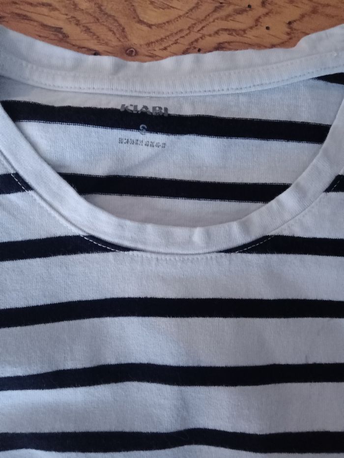 joli ensemble t-shirt marinière et pantalon coupe droite bleu marine, taille élastique