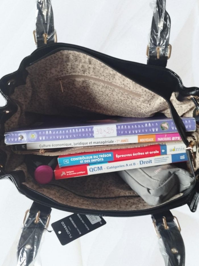 💌 Articles d'origine uniquement 💌 EXPÉDITION rapide 💌 Emballage neuf et soigné CARACTÉRISTIQUES : Grand sac aspect craquelé qui n'a rien à envier aux plus grandes marques, il est l'accessoire parfait pour compléter avec style et raffinement vos tenues préférées. Très fonctionnel, il offre une grande capacité de rangement qui en fait un allié idéal pour de nombreuses occasions : cours (classeurs A4 ou 32/25 cm, Pc, tablette ...), travail, shopping, voyage .... Un sac cadeau est OFFERT à la demande sur les articles non remisés (à préciser lors de la commande) 🎀 ⚜️ Matière : 100% synthétique, doublure polyester ⚜️ Modèle : large ⚜️ Couleur :noir ⚜️ Parties métalliques : dorées ⚜️ Détails : lacets ajustant la longueur en haut ⚜️ Dimensions : L 40 (base) x H 29 x P 14 cm (bords coutures) ⚜️ Anses ajustables : jusqu'à env 27 cm ⚜️ Intérieur : 3 poches plaquées dont 1 zippée 1 longue poche zippée centrale ⚜️ Extérieur : 1 poche zippée au dos ⚜️ Fermeture : zip ⚜️ État : neuf avec étiquette