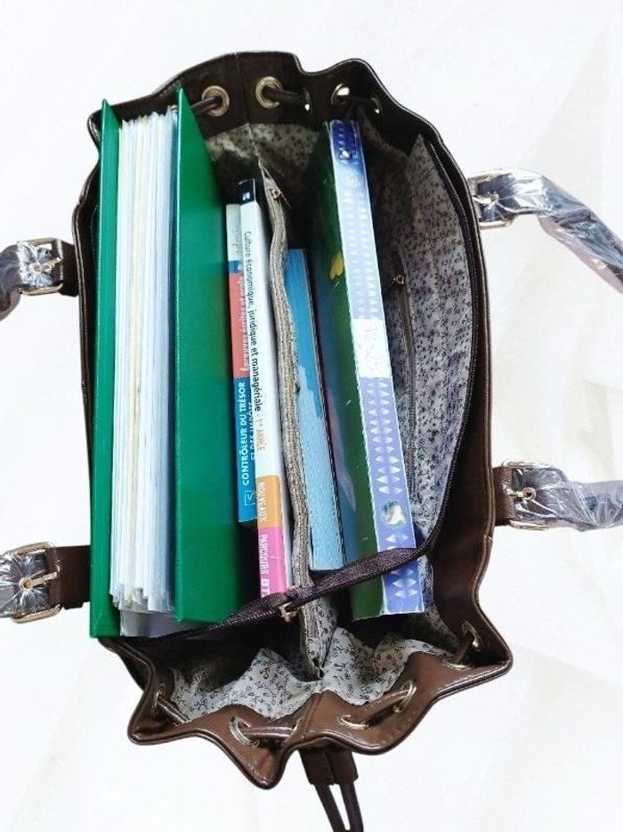 💌 Articles d'origine uniquement 💌 EXPÉDITION rapide 💌 Emballage neuf et soigné CARACTÉRISTIQUES : Grand sac aspect craquelé qui n'a rien à envier aux plus grandes marques, il est l'accessoire parfait pour compléter avec style et raffinement vos tenues préférées. Très fonctionnel, il offre une grande capacité de rangement qui en fait un allié idéal pour de nombreuses occasions : cours (classeurs A4 ou 32/25 cm, Pc, tablette ...), travail, shopping, voyage .... Un sac cadeau est OFFERT à la demande sur les articles non remisés (à préciser lors de la commande) 🎀 ⚜️ Matière : 100% synthétique, doublure polyester ⚜️ Modèle : large ⚜️ Couleur : chocolat 🍫 ⚜️ Parties métalliques : dorées ⚜️ Détails : lacets ajustant la longueur en haut ⚜️ Dimensions : L 40 (base) x H 29 x P 14 cm (bords coutures) ⚜️ Anses ajustables : jusqu'à env 27 cm ⚜️ Intérieur : 3 poches plaquées dont 1 zippée 1 longue poche zippée centrale ⚜️ Extérieur : 1 poche zippée au dos ⚜️ Fermeture : zip ⚜️ État : neuf avec étiquette