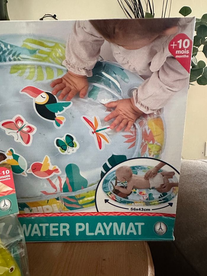 Lot LUDI comprenant : 💦 Grand tapis d’eau gonflable – dès 10 mois 🚿 Aspergeurs / jouets de bain – dès 10 mois Idéal pour développer la motricité, l’éveil sensoriel et le jeu.