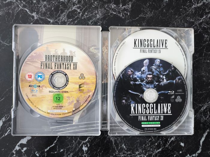 Film Kingsglaive : Final Fantasy XV (2016) en très bon état. Édition Steelbook comprenant le film Kingsglaive en blu-ray et DVD et le film Final Fantasy : Brotherhood (en VO avec sous-titre français). Animation, Fantastique et Action de Takeshi Nozue avec les voix de Aaron Paul, Lena Headey, Sean Bean, Adrian Bouchet et Andrea Tivadar. Envoi soigné et protégé dans du papier bulle et emballage carton. Protection plastique pour steelbook vendu avec. Plusieurs autres films (DVD et blu-ray) et séries télé disponibles sur mon dressing. Si vous avez des questions ou souhaitez plus de photos, n'hésitez pas à me demander. Prix négociable seulement si vous achetez plusieurs articles. N'hésitez pas à créer un lot et à faire une proposition raisonnable et à me demander un prix. Tag de recherche : #neboo_video #neboo_bluray #neboo_film blu ray bluray langue français française French FR 15