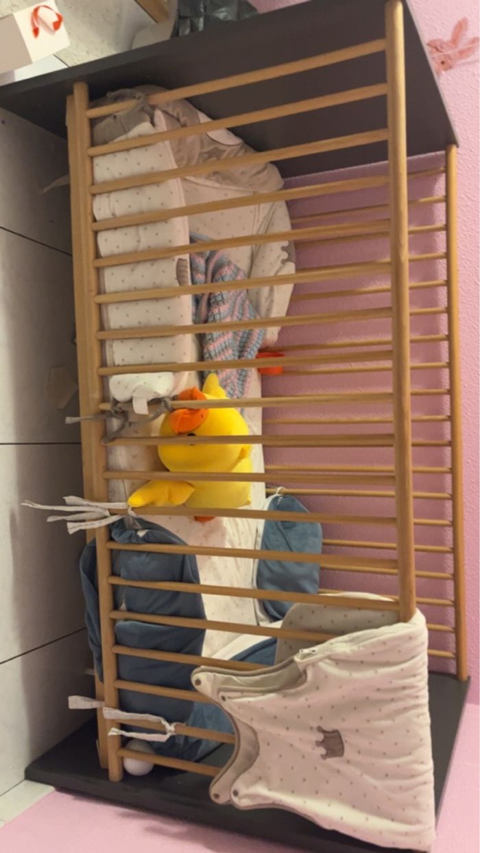 Bonjours je vent mon lit bébé de ma fille de la naissance à 2 ans avec matela Petit défaut mais aucun truc dangereux Prix à débattre mais pas en dessous de 100€ il y’a le matela interférer dans le prix