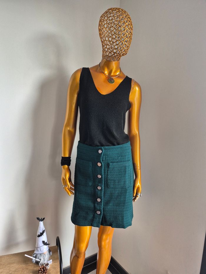👘 Jupe Courte Verte avec Boutons Femme 🔎 Taille 42 📏 Longueur de la jupe : environ 47 cm 💠 65% Polyester, 28% Acrylique, 4% Polyamide, 2% Viscose, 1% Laine 🏷 Etat neuf avec étiquette, sous blister 🚚 Envoi Rapide et Soigné