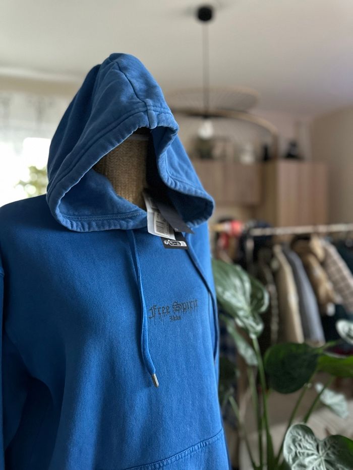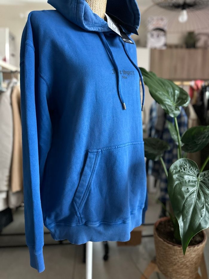 Sweat IKKS bleu, doux et confortable. Capuche avec cordons, poche kangourou, logo discret sur la poitrine. Coupe casual, facile à porter au quotidien. 📌 État : neuf avec étiquette 💶 Prix boutique : 135 € (indiqué sur l’étiquette) Idéal pour un look décontracté chic. N’hésitez pas pour plus d’infos.