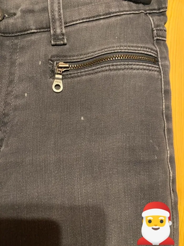 Jean gris de la marque Angels, taille 36. - Type de produit : Jean - Marque : Angels - Taille : 36 - S - Couleur : Gris / Anthracite - Caractéristiques : Fermetures éclair sur les poches avant, contient de l’élasthane, Quelques petits points blancs délavés sur le haut du pantalon N'hésitez pas à me contacter pour plus d'informations ou de photos. Envoi rapide