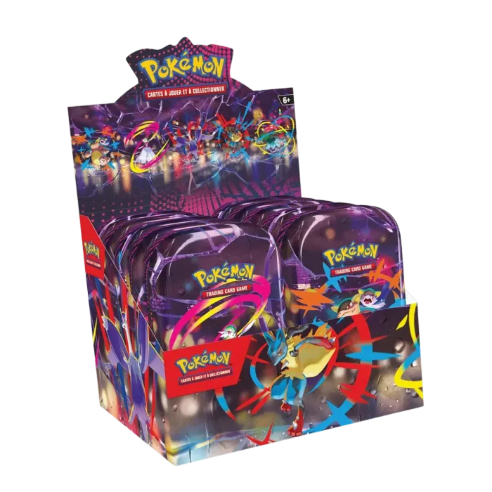 🟥 Mini Tins Méga-Héroïsme – Méga-Évolution Édition Française – Sortie officielle : 10/10/2025 Les Mini Tins Méga-Héroïsme débarquent avec l’extension Pokémon ME01 – Méga-Évolution ! Un format compact et collector, idéal pour enrichir sa collection ou faire un cadeau original. Chaque Mini Tin contient des boosters, une carte illustrée et une pièce Pokémon exclusive, réunis dans un coffret métal premium. 📦 Contenu de chaque Mini Tin : • 2 boosters Pokémon (ME01 + autres séries récentes, selon configuration) • 1 carte illustrée à collectionner • 1 pièce Pokémon collector 📦 Contenu de la Display : • 10 Mini Tins officielles scellées (FR) ℹ️ Informations complémentaires : • Langue : Français • Date de sortie : 10 octobre 2025 • État : Neuf – Produits officiels Pokémon, scellés sous cello ⚠️ Sécurité : Ne convient pas aux enfants de moins de 36 mois. Présence de petits éléments pouvant être avalés.