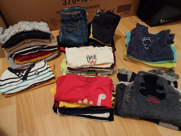 Lot de vêtements 6 mois 2 salopette 4 pyjama 20 tee shirt 2 pull 8 gilets 18 pantalons