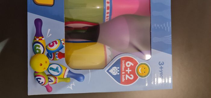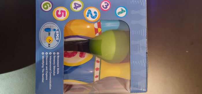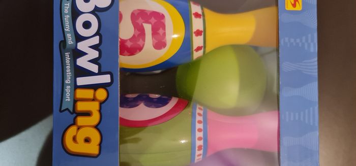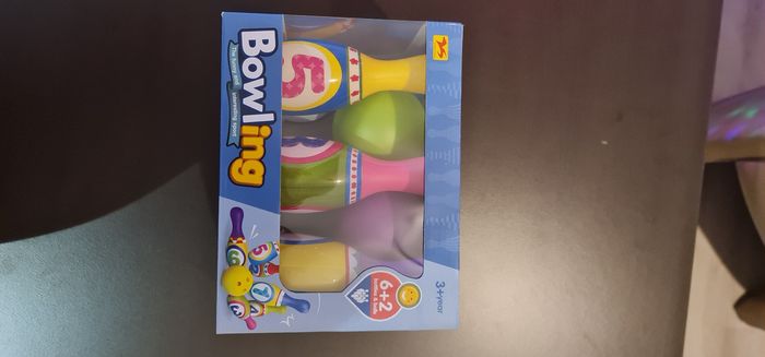 Jouet booling neuf jeu idéal pour jouer avec votre enfant pour apprendre les couleur, les numéro, et le faire se dépenser avec les aller retour. Toutes les info sont sur la boîte merci.