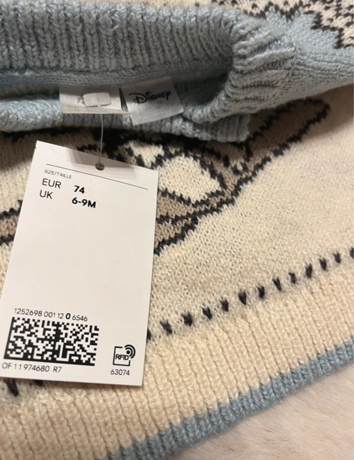 Jolie pull en maille douce Imprimée Mickey Mouse Taille 9 mois 74 cm Marque Disney x H&M Neuf avec étiquette