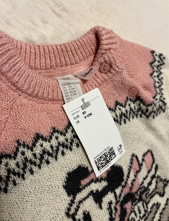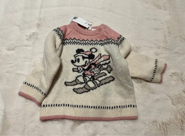 Jolie pull en maille douce Imprimée Minnie Mouse Marque Disney X H&M Taille 12 mois 80 cm Neuf avec étiquette