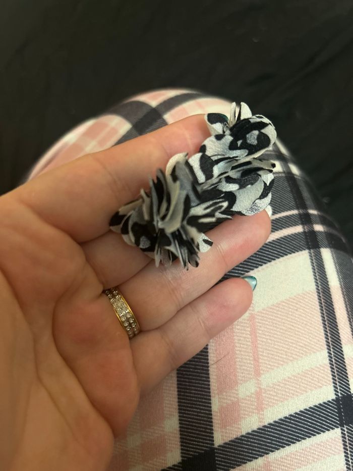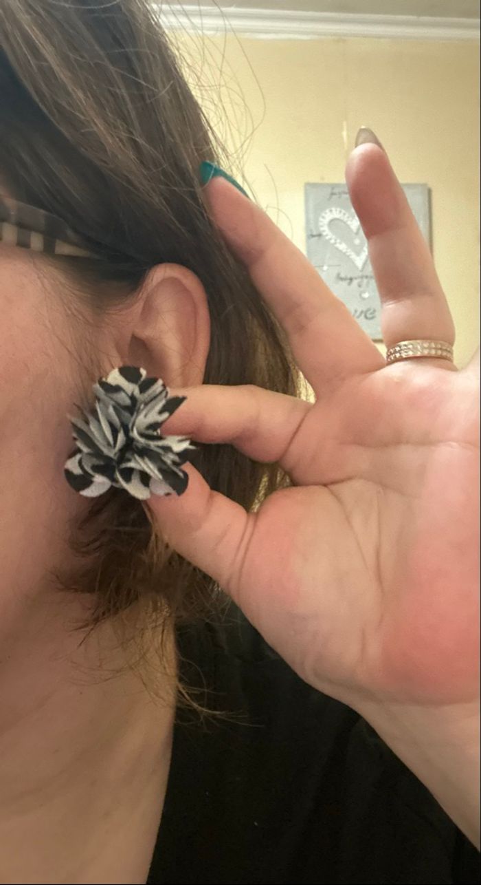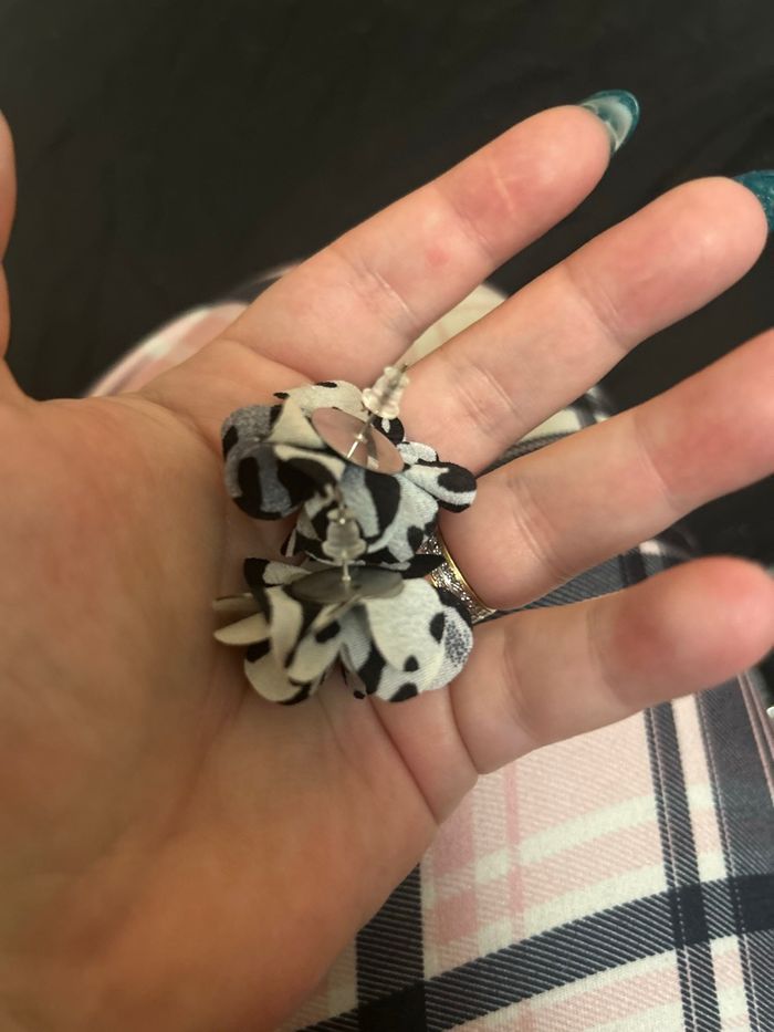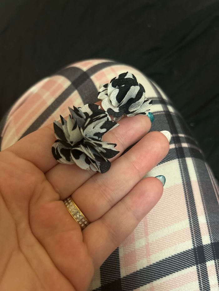 DRESSING PROPOSANT RÉDUCTIONS 💶😀 Petites boucles d’oreilles à froufrous pour femme. Ressemblant à une fleur. Pour oreilles percées. Couleurs : Noir, blanc et gris ✨NEUVES. Jamais portées.✨ Prix : 3€45 Je dépose DANS LA MESURE DU POSSIBLE les colis 📦 le jour même ou lendemain du paiement. 😉 MAIS SI CEST UN ENVOI URGENT, MERCI DE ME LE PRÉCISER ☺️. N’hésitez pas à jeter un coup d’👀 à mes évaluations. 🙂
