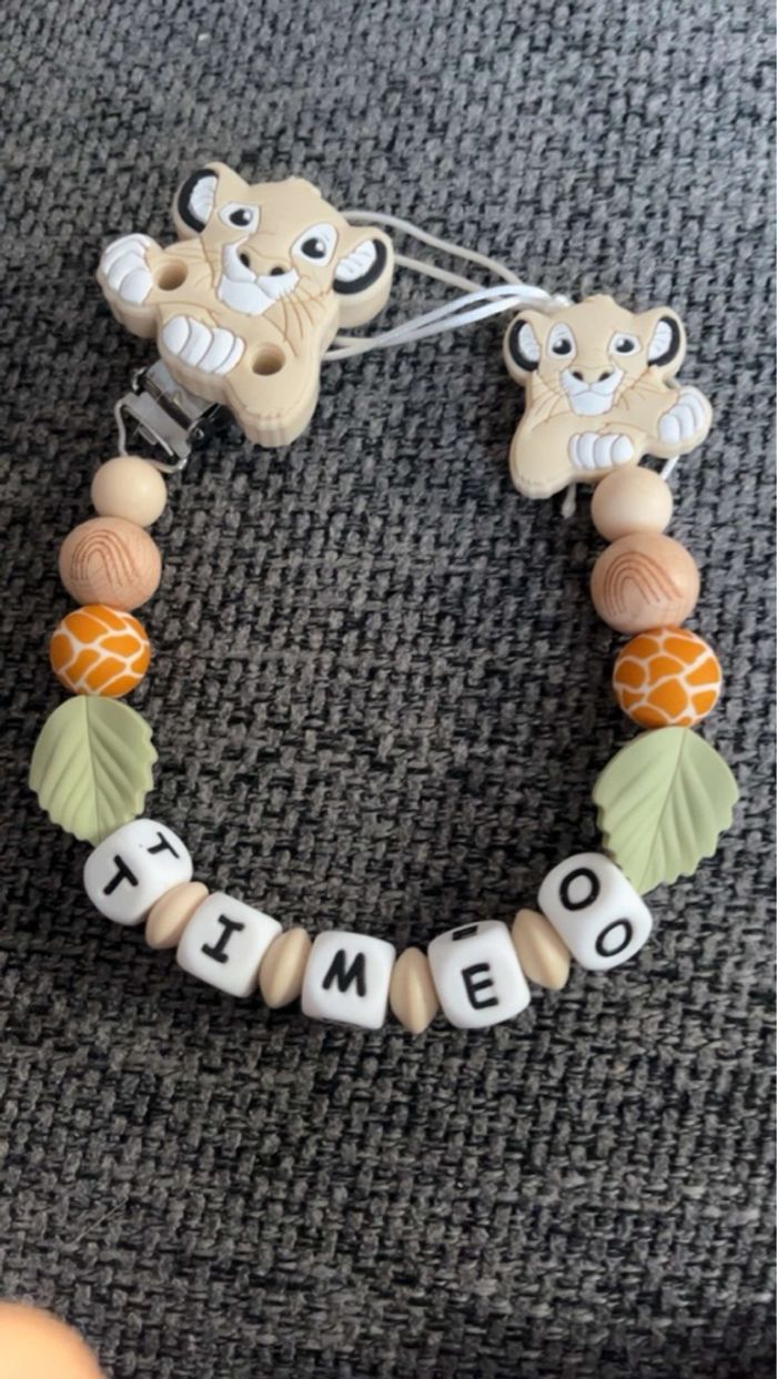 Attache tétine personnalisé en silicone ou en bois au souhait de l’acheteur . Personnalisable au choix de l’acheteur que ce soit la couleur comme le prénom ou le thème . Le fil est doublé pour plus de sécurité tout le long de l’attache tétine. N’hésitez pas à me demander et regarder mon dressing. Une photo vous sera envoyée avant l’expédition pour vous ayez un aperçu du rendu. Tous les produits sont réalisés avec du materiel spécial conçu aux bébés , enfants.