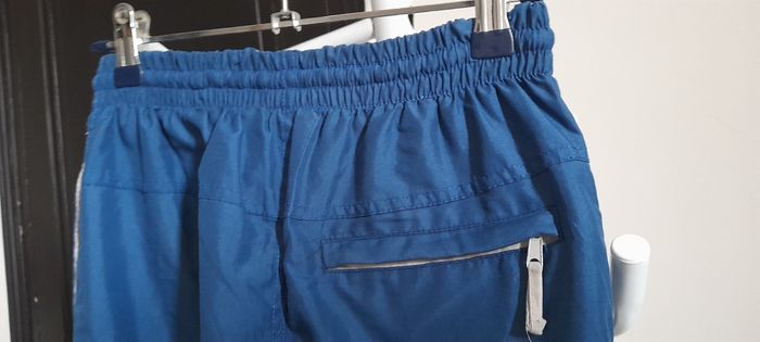 Pantalon de survêtement T 12 ans Marque BASIC ONE Couleur bleu Taille élastique avec cordon 2 poches Fermeture éclair et élastique pour resserrage bas de jambes Broderie sur haut jambe gauche 1 poches arrière avec fermeture éclair Doublé Très très bon état