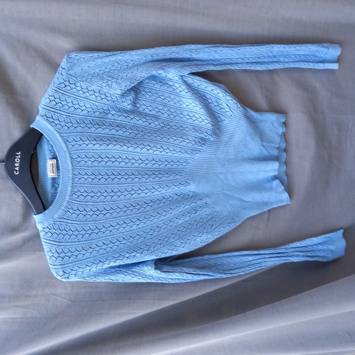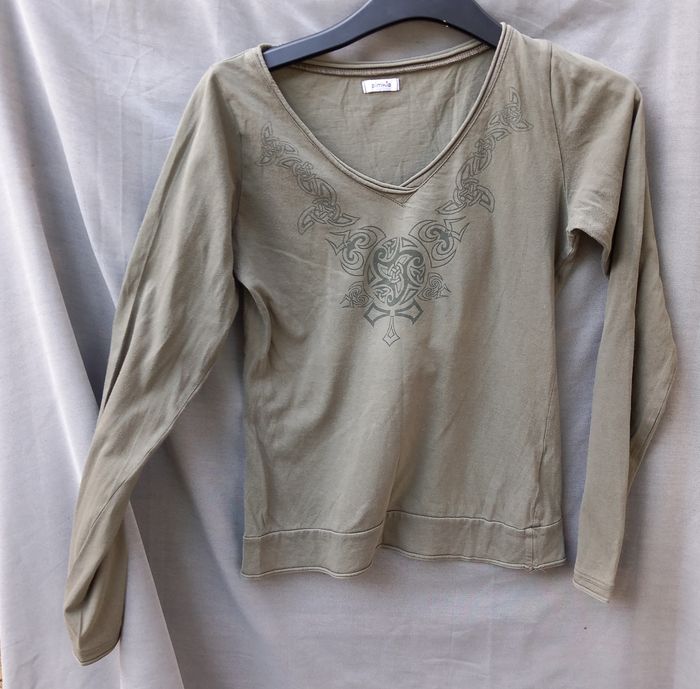 - Sweat court, col rond, manches et bas resserré, coloris rose, composition 100% polyamide, largeur épaules 49 cm - aisselles 49 cm longueur épaule-bas = 44 cm et aisselle-bas = 17 cm - Tee-shirt manches longues Pimkie coloris kaki col en V, dessin imprimé, largeur épaules 31 cm - aisselles 42 cm longueur épaule-bas = 54 cm et aisselle-bas = 37 cm, article porté - Pull Pimkie, col rond, coloris bleu ciel, bas resserré, 60% viscose 40% coton, largeur épaules 34 cm - aisselles 51 cm longueur épaule-bas = 53 cm et aisselle-bas = 37 cm - pull Esprit, manches longues, col rond, composition 100% coton, coloris noir et gris, tissu imprimé à rayures, marque sur étiquette (voir photo - N29911/7305969/106 - RN107288 CA 42394), largeur épaules 31 cm - aisselles 39 cm, longueur épaule-bas = 57 cm et aisselle-bas = 41 cm, longueur manches 52 cm envoi rapide et soigné possibilité de faire une offre en lots