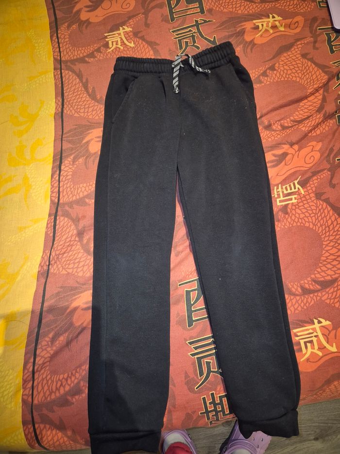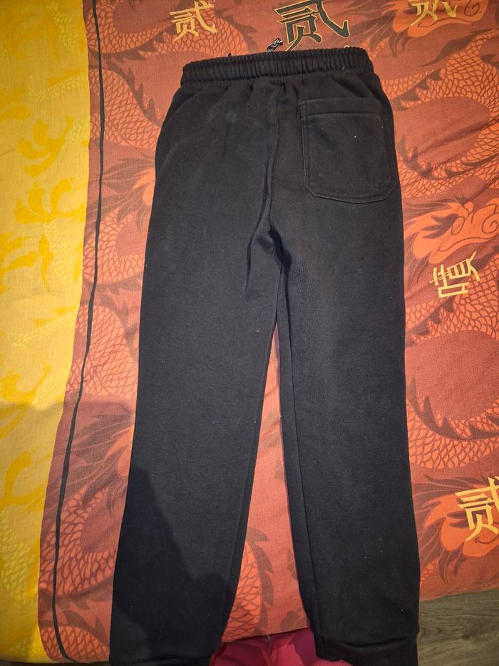 Vend bas de jogging garcon noir Interieur polaire, taille ajustable, 2 poches avant et 1 arriere Tres bon etat 10 ans Kiabi