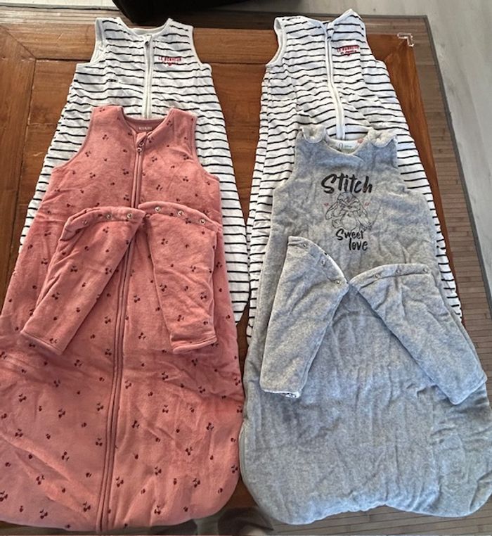 4 gigoteuses 1. mi saison en 6-18mois et 2 hiver en 6-18 mois 1 mi saison en 18-36 mois