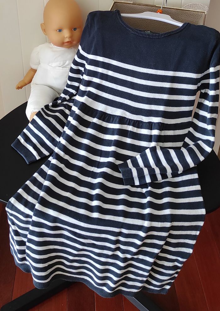 Robe pull fille 8 ans – Rayures bleu & blanc – Bon état