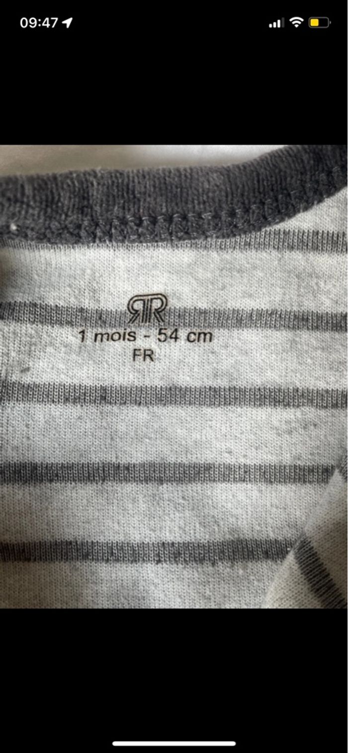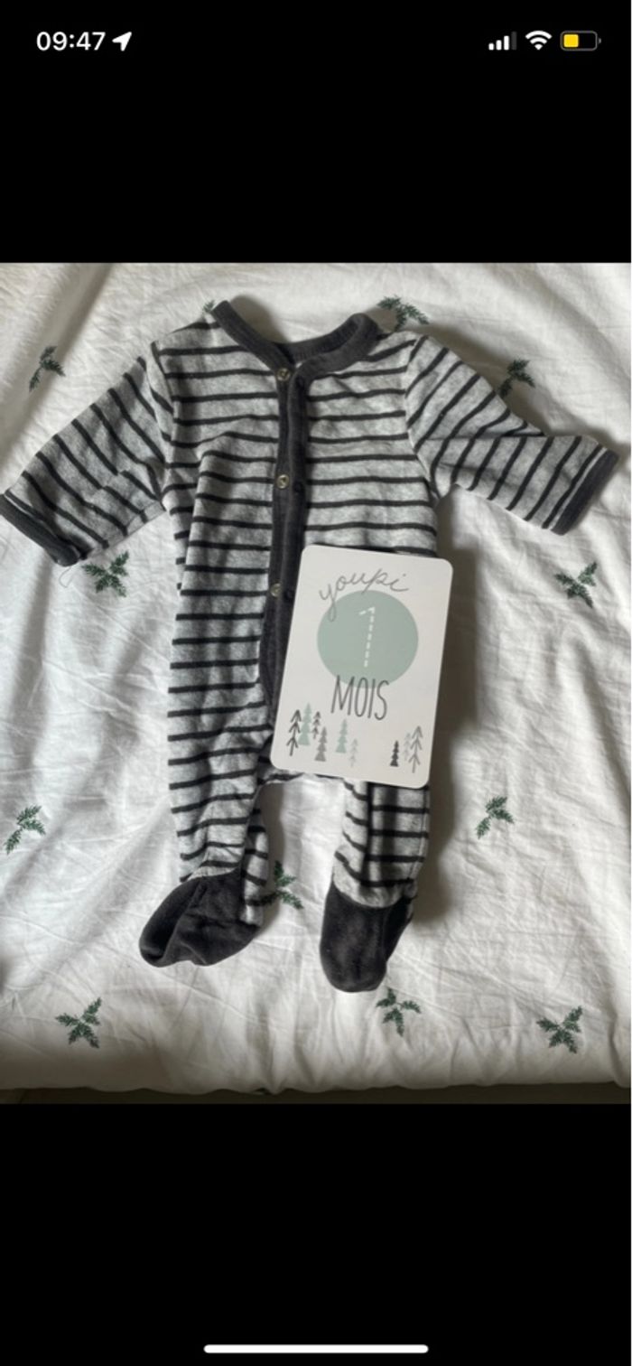 Pyjama ouverture à l’avant - chaud hiver velours Thème : rayures gris 📏 taille : 1 mois 54 cm 🛍️ marque : la redoute 🗒️ état : très bon état - ni tache ni trou Maison non fumeur, sans animaux. Lessive clean 🍃