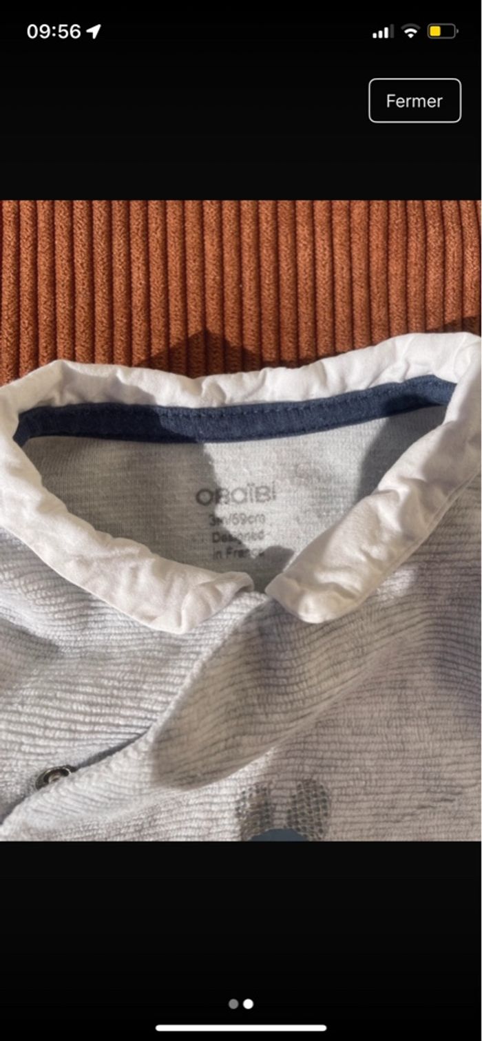 Pyjama chaud / effet velours 🐨 📏 taille : 3 mois 🛍️ marque : obaibi 🗒️ état : bon état - ni tache ni trou - coté velours atténué à cause des lavages Maison non fumeur, sans animaux. Lessive clean 🍃