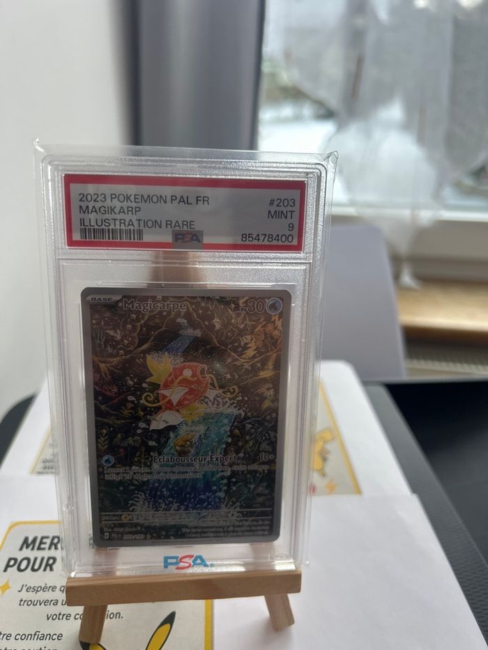Carte Pokémon, magikarpe de évolution à Paldea PSA 9parfait état envoie protège avec papier bulle
