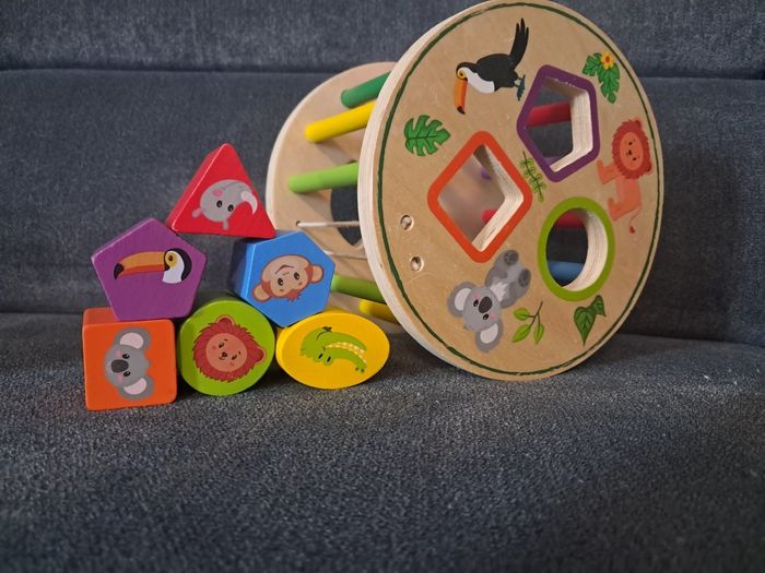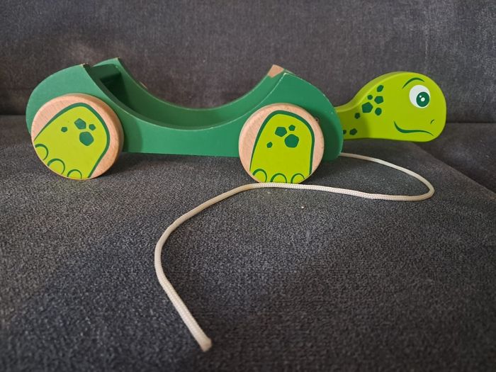 Vend ce jeu de forme et à tirer tortues en bois complet A servi, avec Quelques éclats de peintures mais reste en bon état