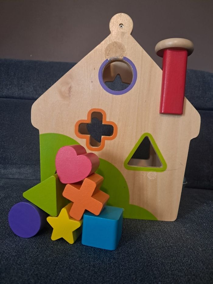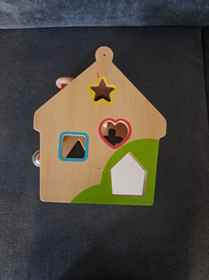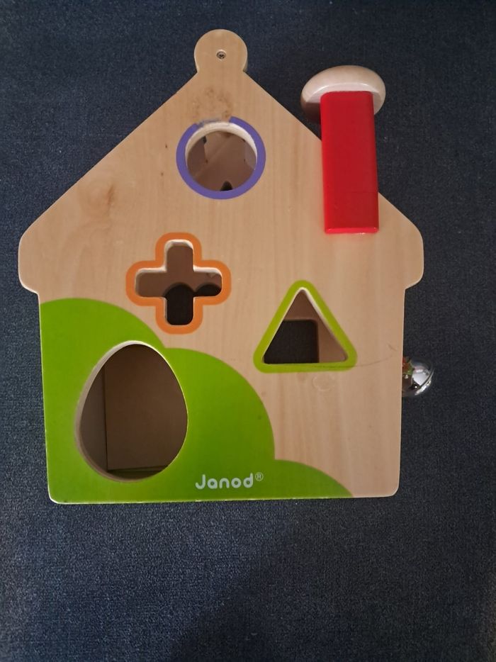 Belle maison de forme en bois janod avec toute les formes, un grelot Manque la balle En bon état
