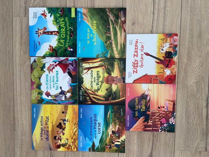 Livre enfants seul ou le lots « Le village enfoui sous la dune du Pilat » « Un tiens vaut mieux que deux tu l’auras » « La girafe qui avait un torticolis » « Un anniversaire dans le maquis Corse » « Cache-cache dans les Vosges » « Le volcan de la Soufrière » « Les tortues de Tahiti » « Ziggy zazou guitare star ! » Bon état Lots 5€ Unité 1€