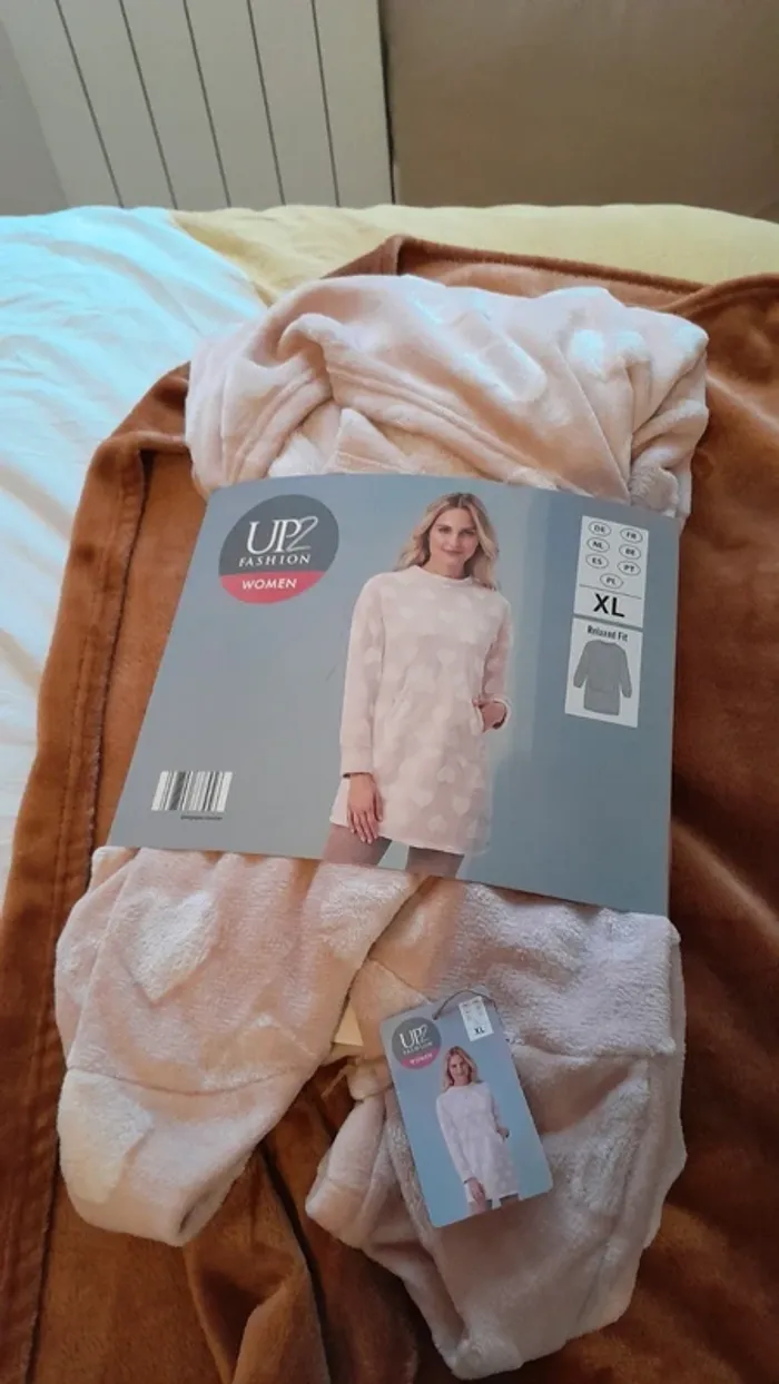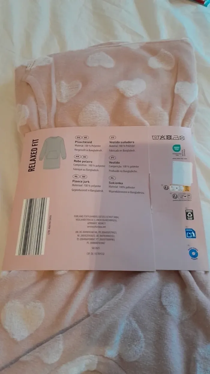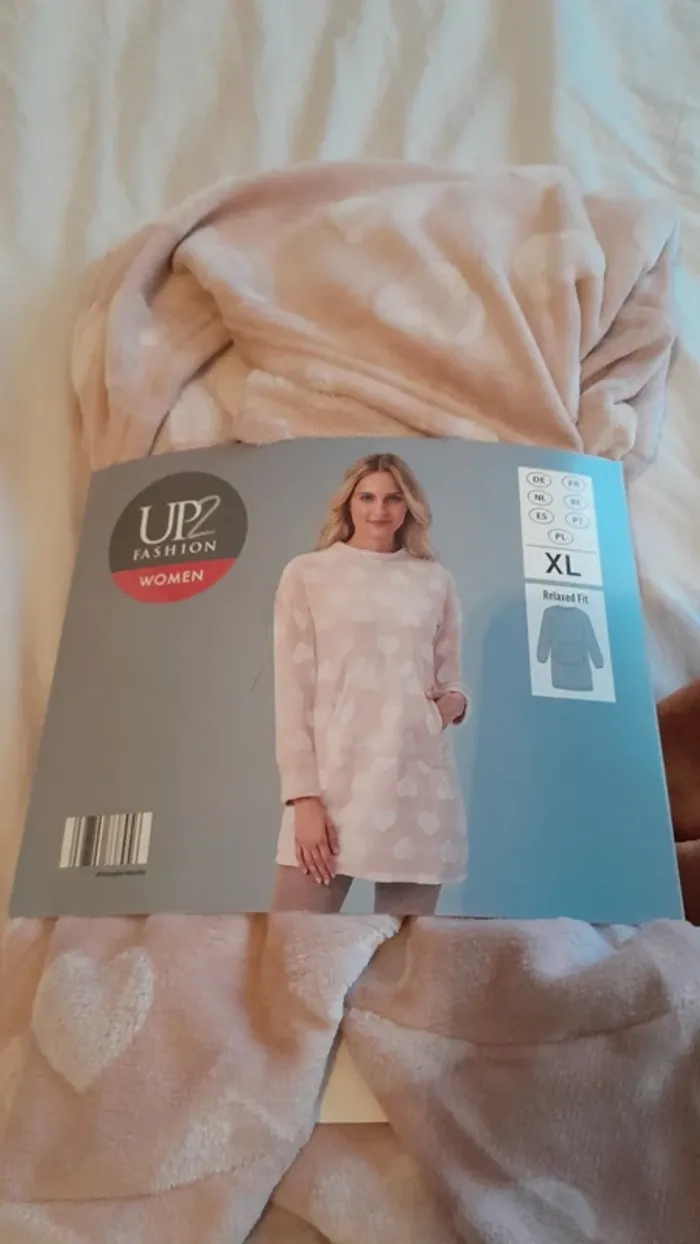 Pull long polaire cocooning XL Rose avec cœurs blancs Neuf encore étiquetté