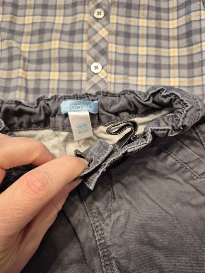 En très bon état Lot comprenant : - Veste Primark Micky 3-6 mois - Pantalon Obaibi 6 mois - Chemise bucheron Obaibi 6 mois - Chemise bleue Kiabi 9 mois